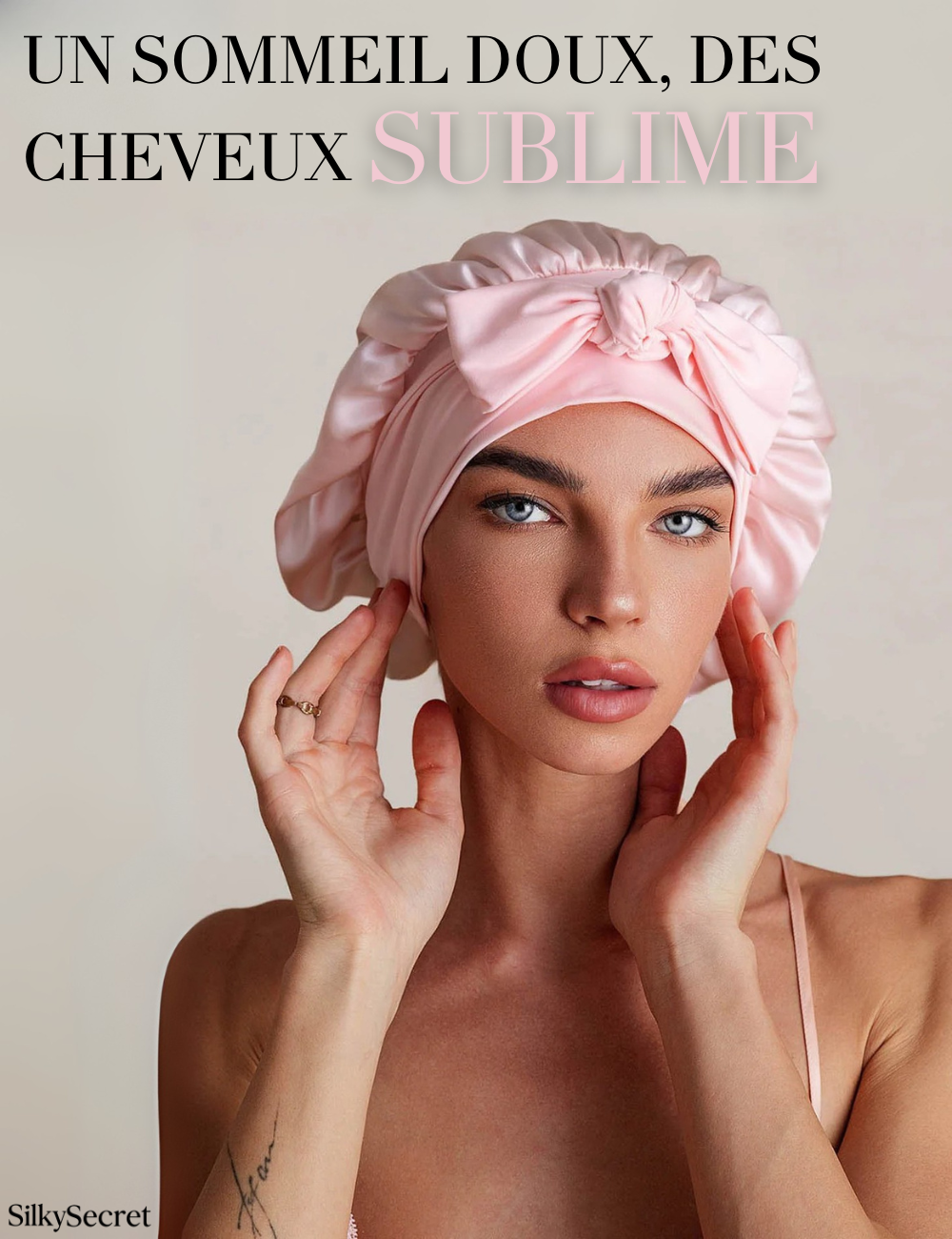 Oui. Nos bonnets sont fabriqués en 100% soie naturelle de haute qualité. La soie utilisée est douce, respirante et respectueuse des cheveux. Elle réduit les frottements pendant la nuit et protège vos cheveux des frisottis, de la casse et du dessèchement. Jamais de polyester déguisé en soie.