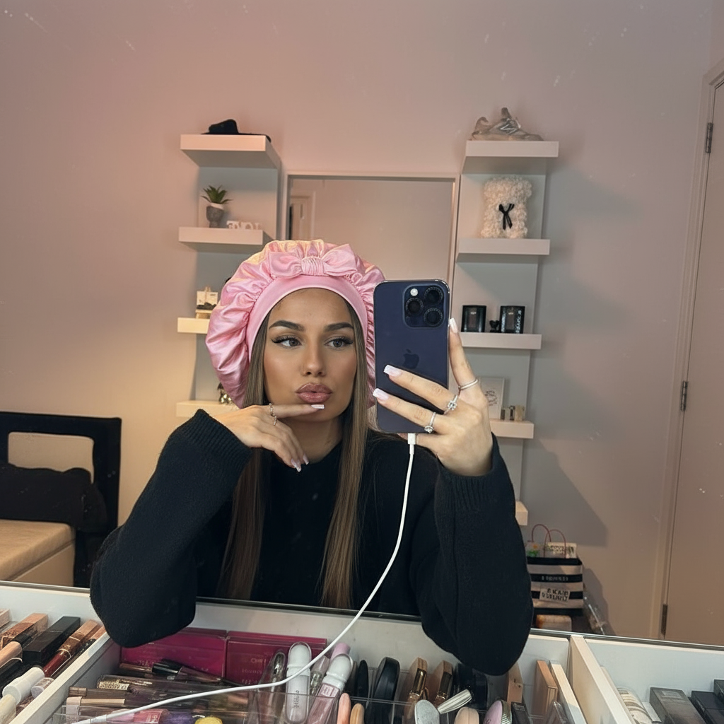 Nos bonnets en soie transforment la routine capillaire de milliers de femmes : moins de frisottis, plus de brillance et un confort inégalé chaque nuit.
